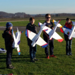 Alle Teilnehmer der DEPRON-Baugruppe 1 trafen sich bei herrlichem Sonnenschein am Flugplatz und stellten sich zu einem Gruppenfoto auf. Danach wurden die ersten Testflüge durchgeführt. Durch den Verlust eines Akkus in der Luft kam es leider zu einem Absturz, der aber am Modell schlimmer aussah, als es tatsächlich war.